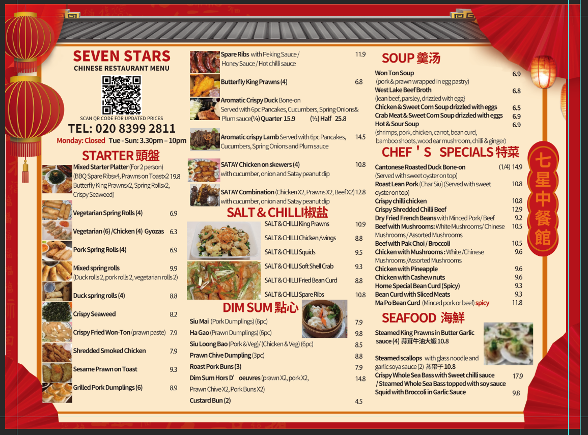 Welcome to Seven Stars Chinese Restaurant, a hidden gem located in the heart of Surbiton, UK. Known for its vibrant atmosphere and exceptional service, this eatery offers an extensive menu that delights the senses. Start your culinary adventure with a variety of starters, including the irresistible Mixed Spring Rolls or flavorful Satay Chicken skewers, perfect for sharing.
